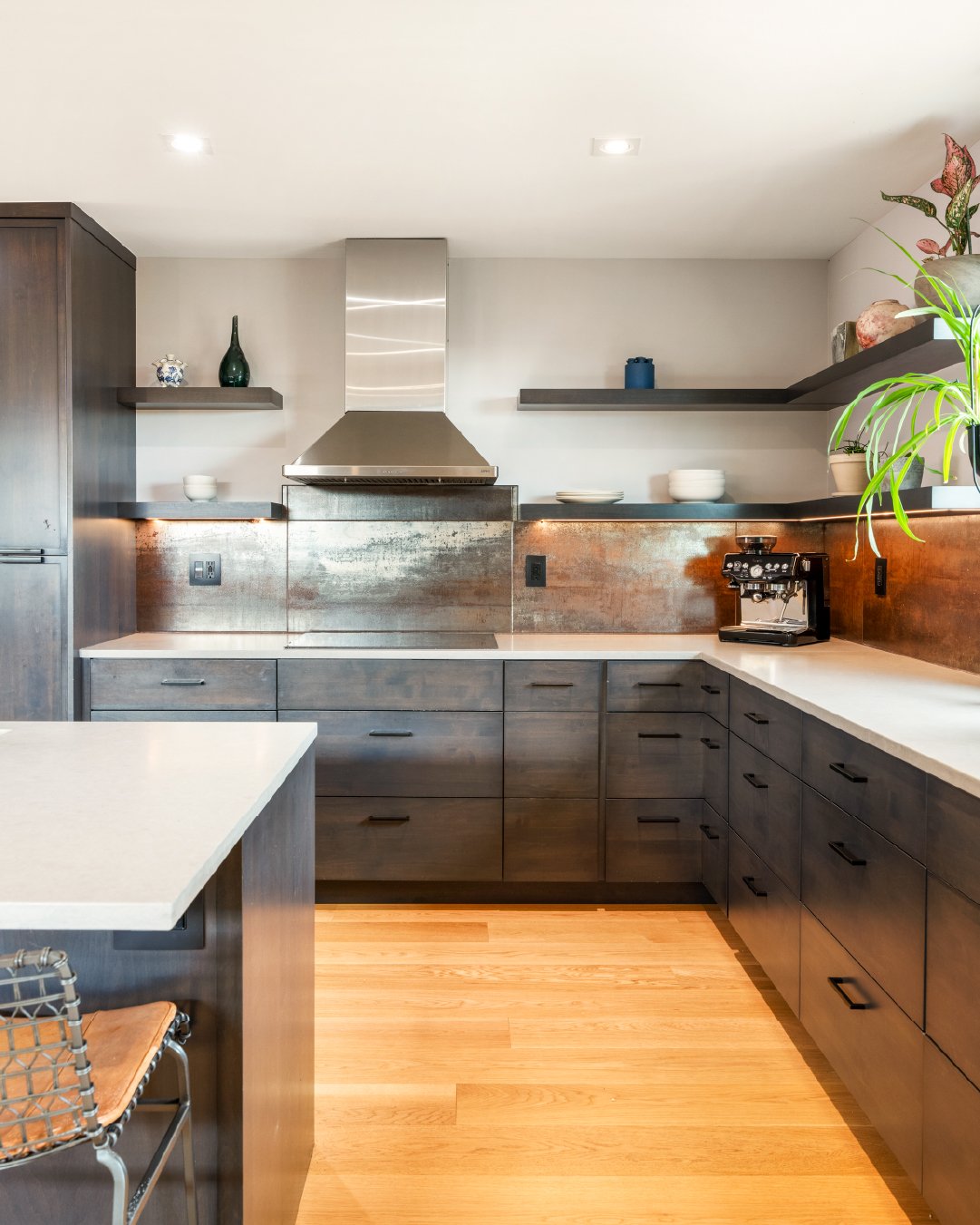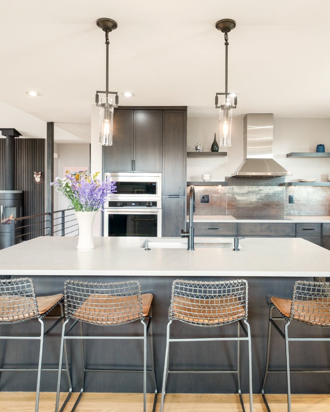 Thoughtfully conceived as a modern mountain sanctuary, the home’s architecture is both bold and intentional, blending clean lines with organic textures that echo the surrounding landscape. The interplay of steel, wood and glass creates a striking visual language, while curated finishes and custom details elevate every space. Vaulted ceilings amplify volume and light, and the floating staircase acts as both a functional centerpiece and sculptural element. Radiant heated floors and advanced systems ensure the home is as comfortable as it is visually compelling, embodying a refined yet livable design ethos. What makes this such a serene space: