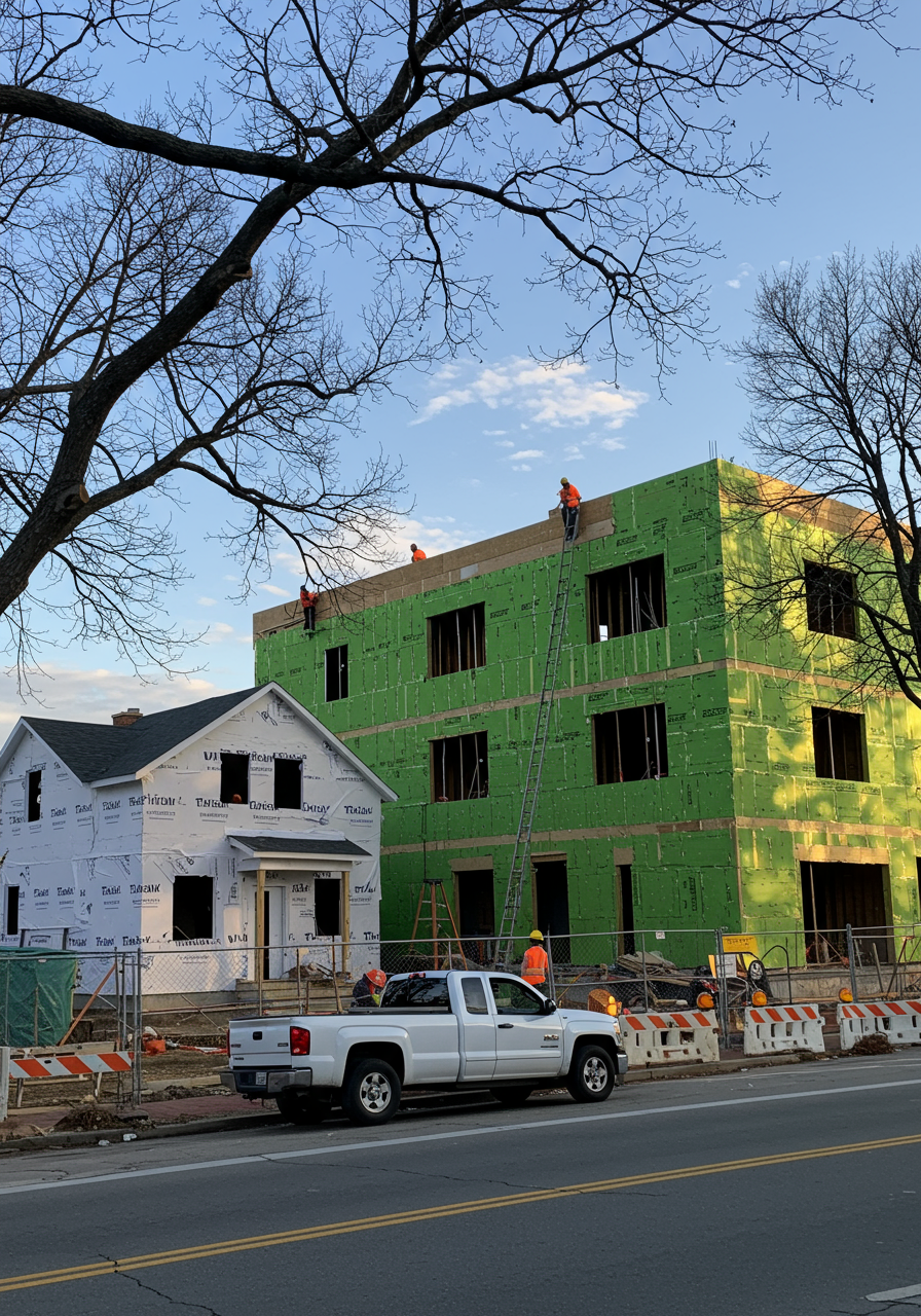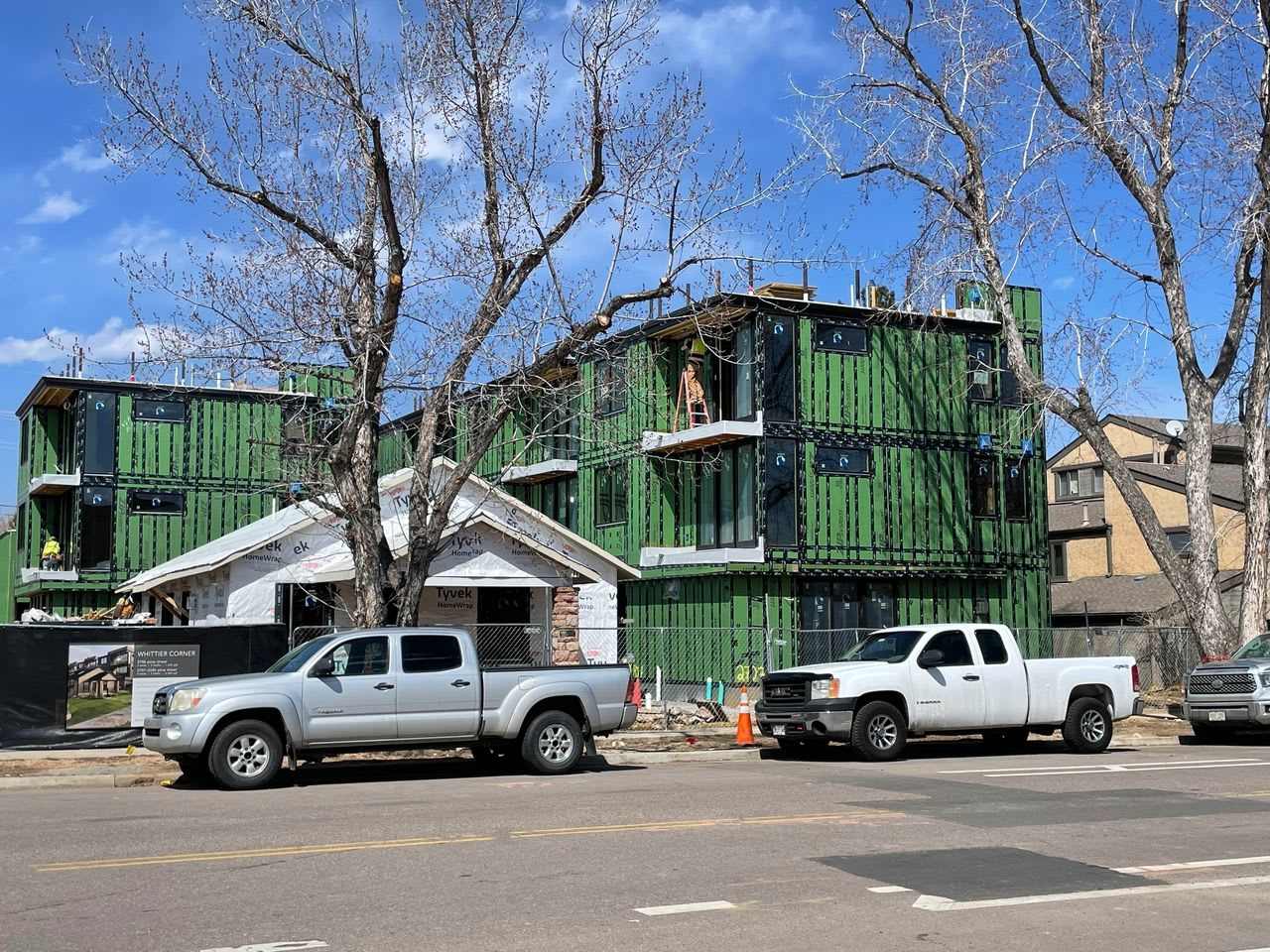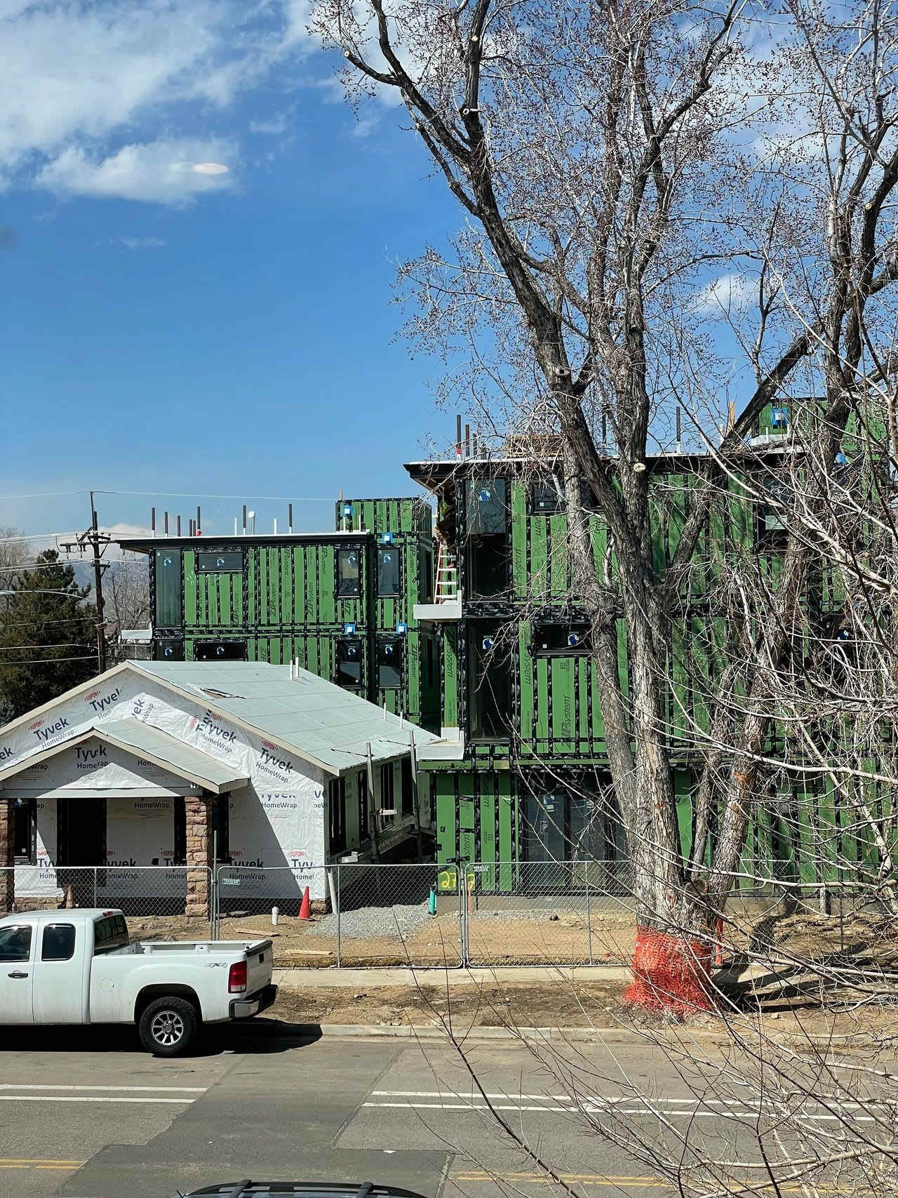 Site tour with buyers at Whittier Corner. On target for October 2023 completion. In true Colorado weather fashion, these photos are taken the same week.
